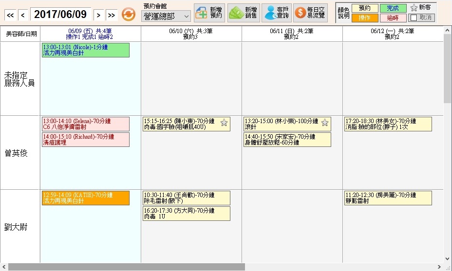 以不同顏色標示不同預約狀態,忙碌狀況一目了然