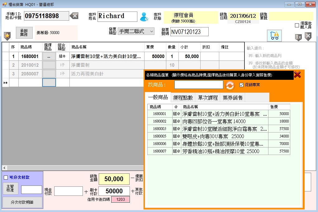 除了一般療程及商品外,豐富又彈性的『組合設定』功能-滿足您各種多元化的行銷活動