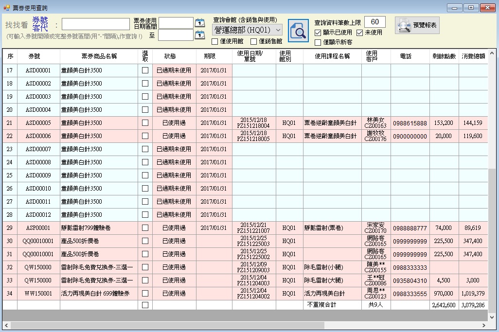 凡使用必留下痕跡-清楚紀錄客戶票券使用狀況